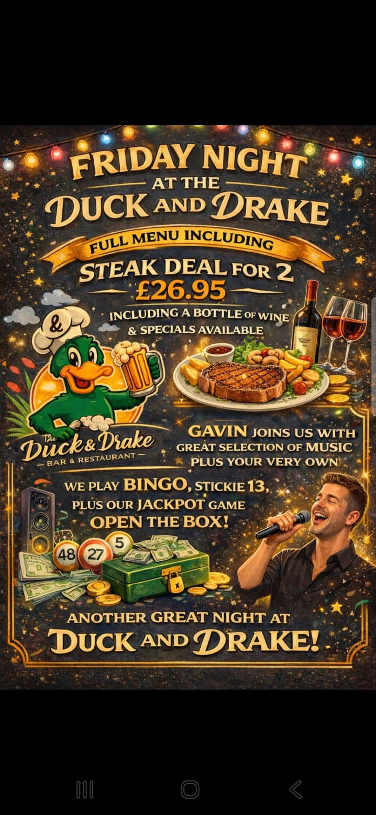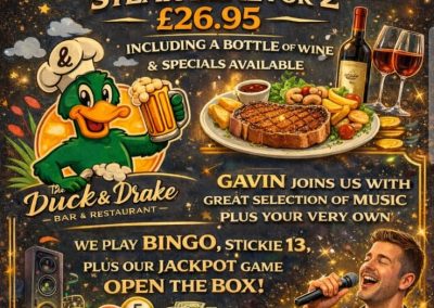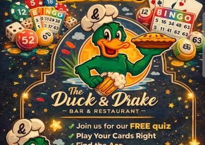 Enjoy incredible live music at the Duck and Drake! Catch top rock, blues, and soul bands every weekend with high-energy performances, along with our regular weekly bingo, games nights and karaoke.